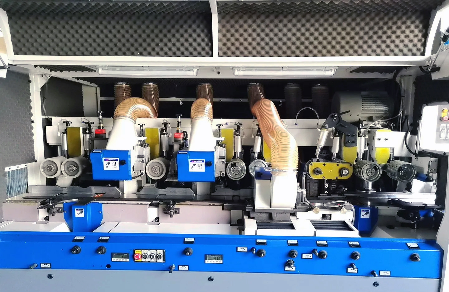 Цифровое позиционирование верхних шпинделей позволяет ускорить процесс перенастройки четырехстороннего станка. |
