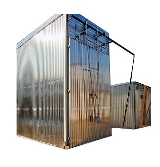 Лесосушильная камера модели MGLD предназначена для сушки пиломатериалов в штабелях до конечной влажности 8-12 % с возможностью фронтальной загрузки погрузчиком. В состав сушильной камеры входит: корпус из высокопрочных алюминиевых сплавов, с установленными в нем системой циркуляции воздуха ( вентиляторы, диаметр 800мм, каждый вентилятор имеет 6 алюминиевых поворотных лопастей,), системой приточно- вытяжной вентиляции ( воздушные заслонки), системой отопления (калориферы, тепловые клапаны, насос, запорный клапан), системой увлажнения ( форсунки, трубы, орошения, клапаны), системой нагрева воздуха, электрораспределительным шкафом, полностью автоматизированной системой управления.